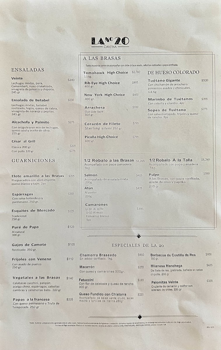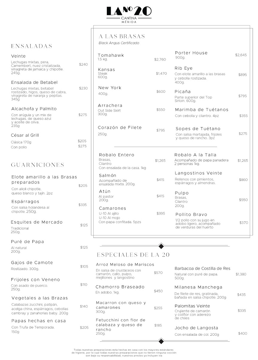 Cantina la 20 Merida Menu